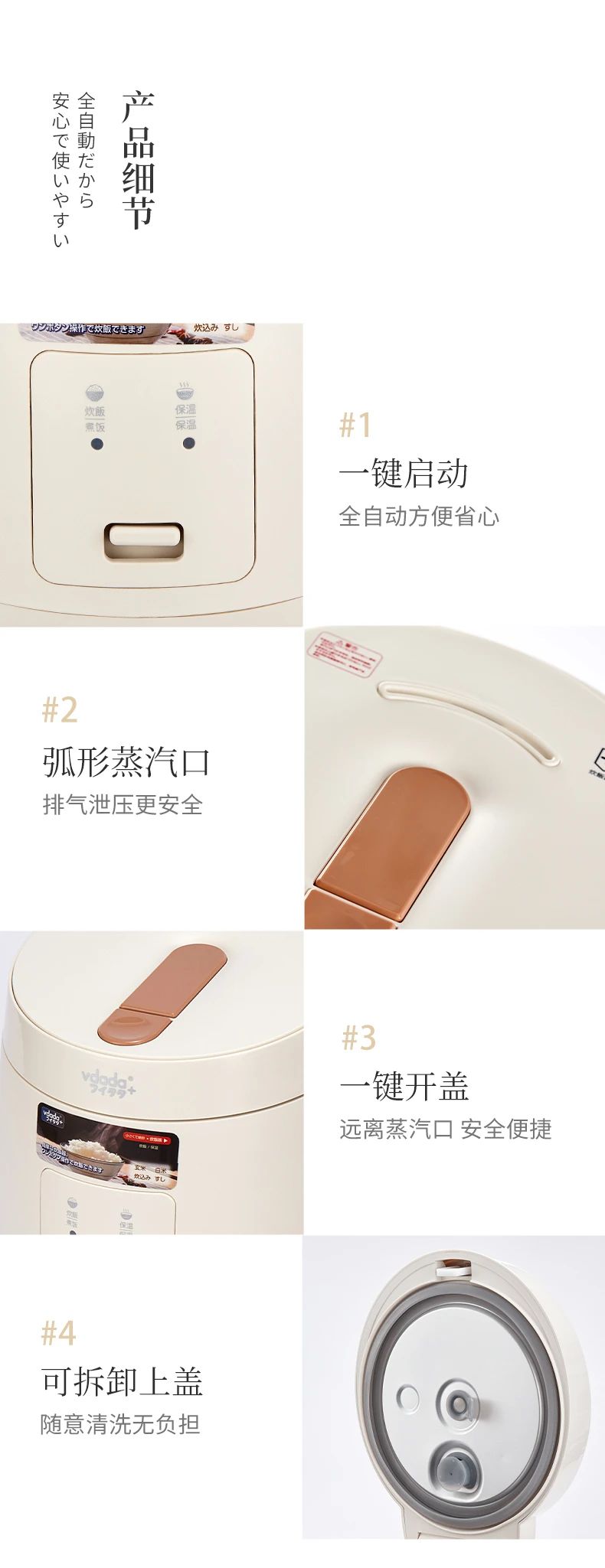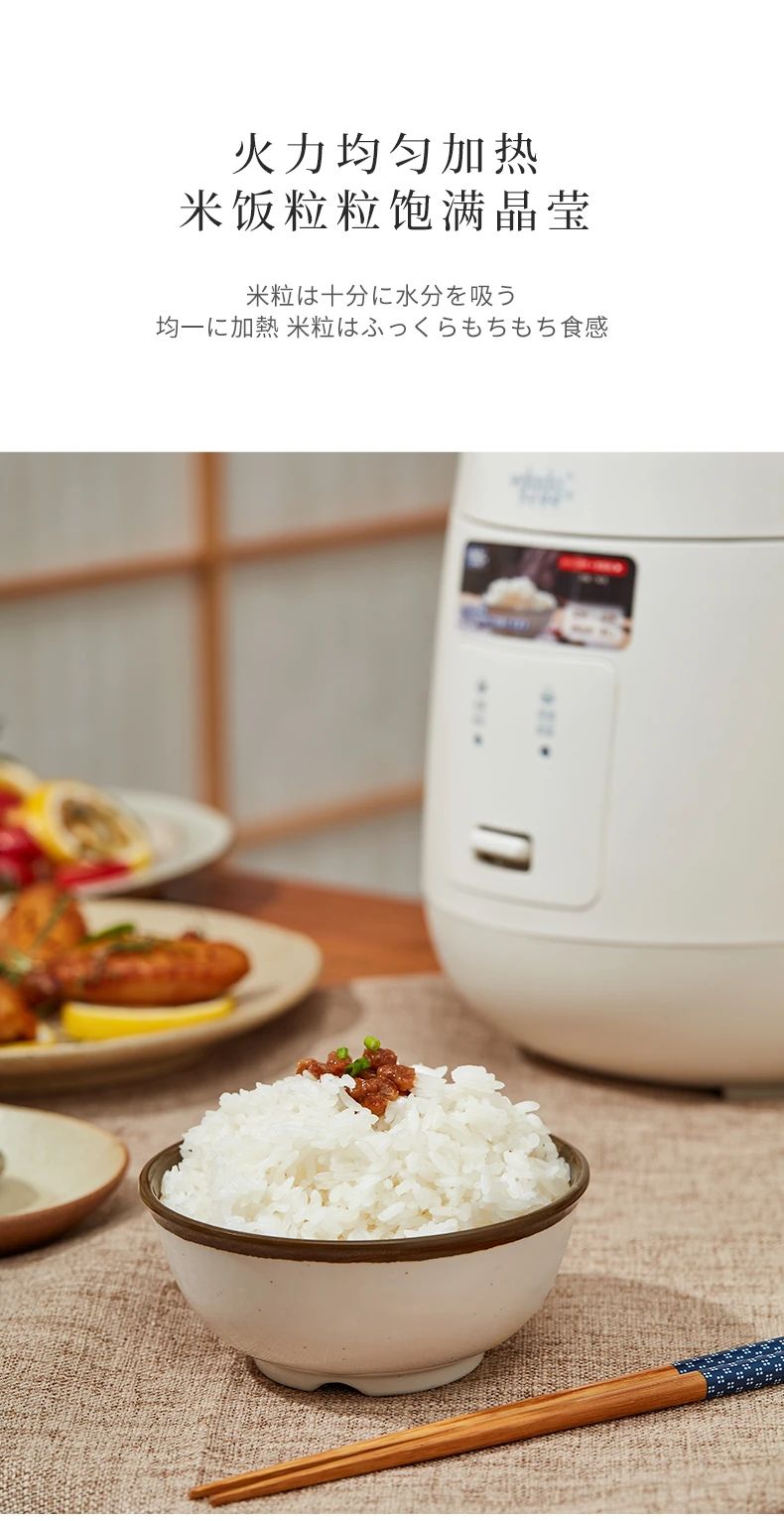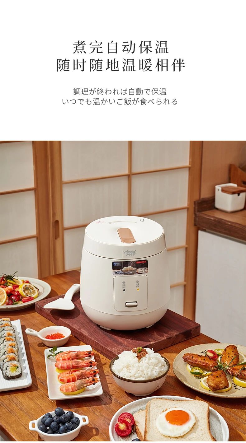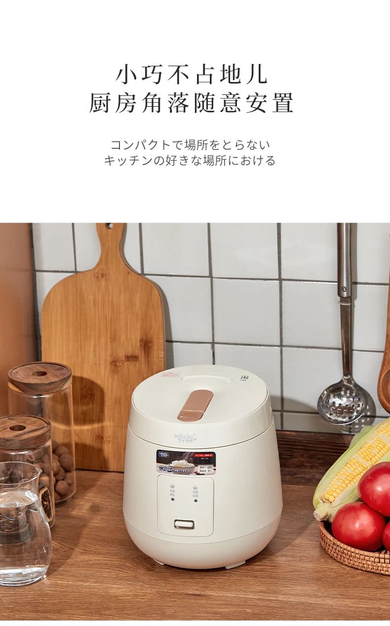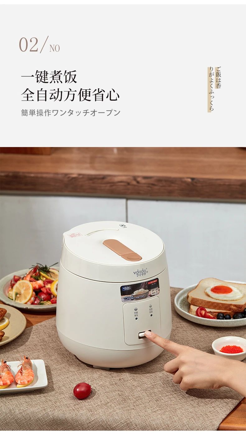 日本vdada味達(dá)自動電飯煲每一天都要好好吃飯~ 2L容量可以滿足約3人份的飯量,內(nèi)膽采用加厚設(shè)計(jì),這種內(nèi)膽擁有非常好的導(dǎo)熱和保溫效果煮出來的米飯粒粒分明口感水潤不粘膩,傻瓜式一鍵操作,免去繁雜步驟,家中老人也可以輕松享用美食,弧形設(shè)計(jì)的蒸汽口比普通電飯煲排氣泄壓更安全