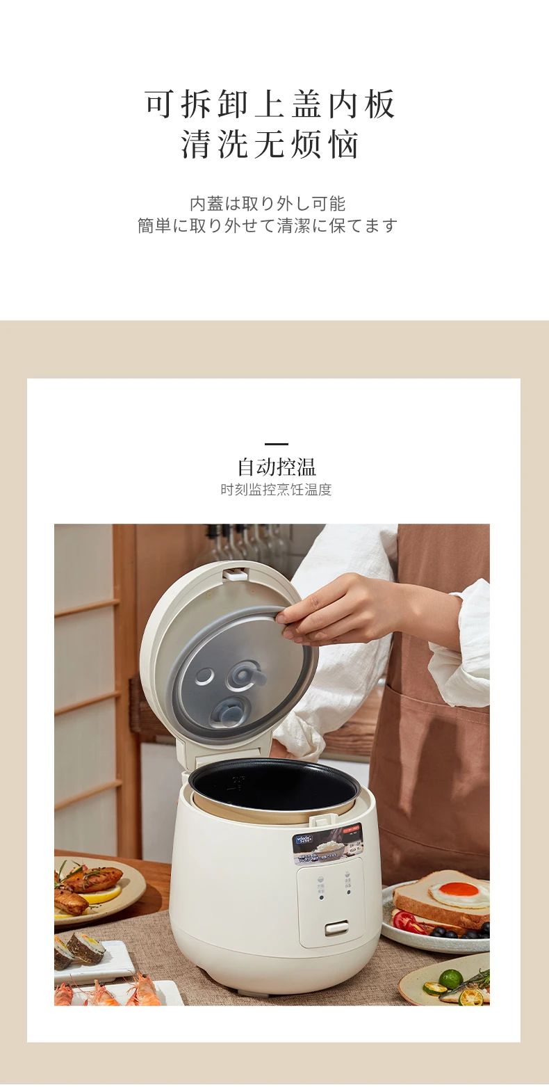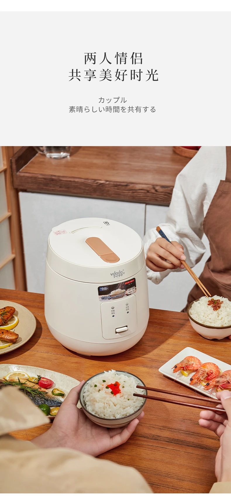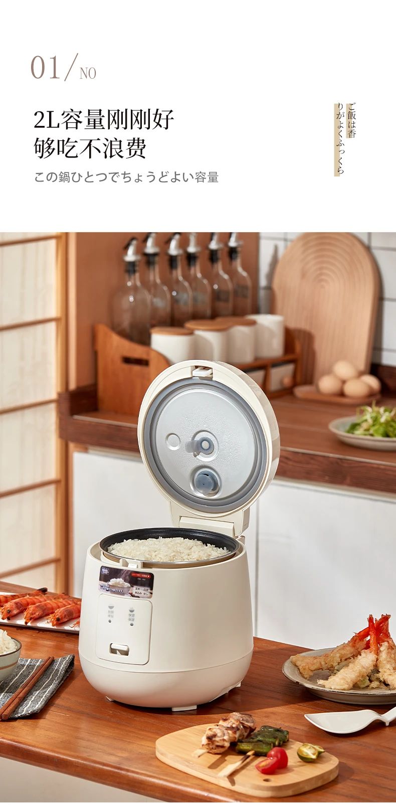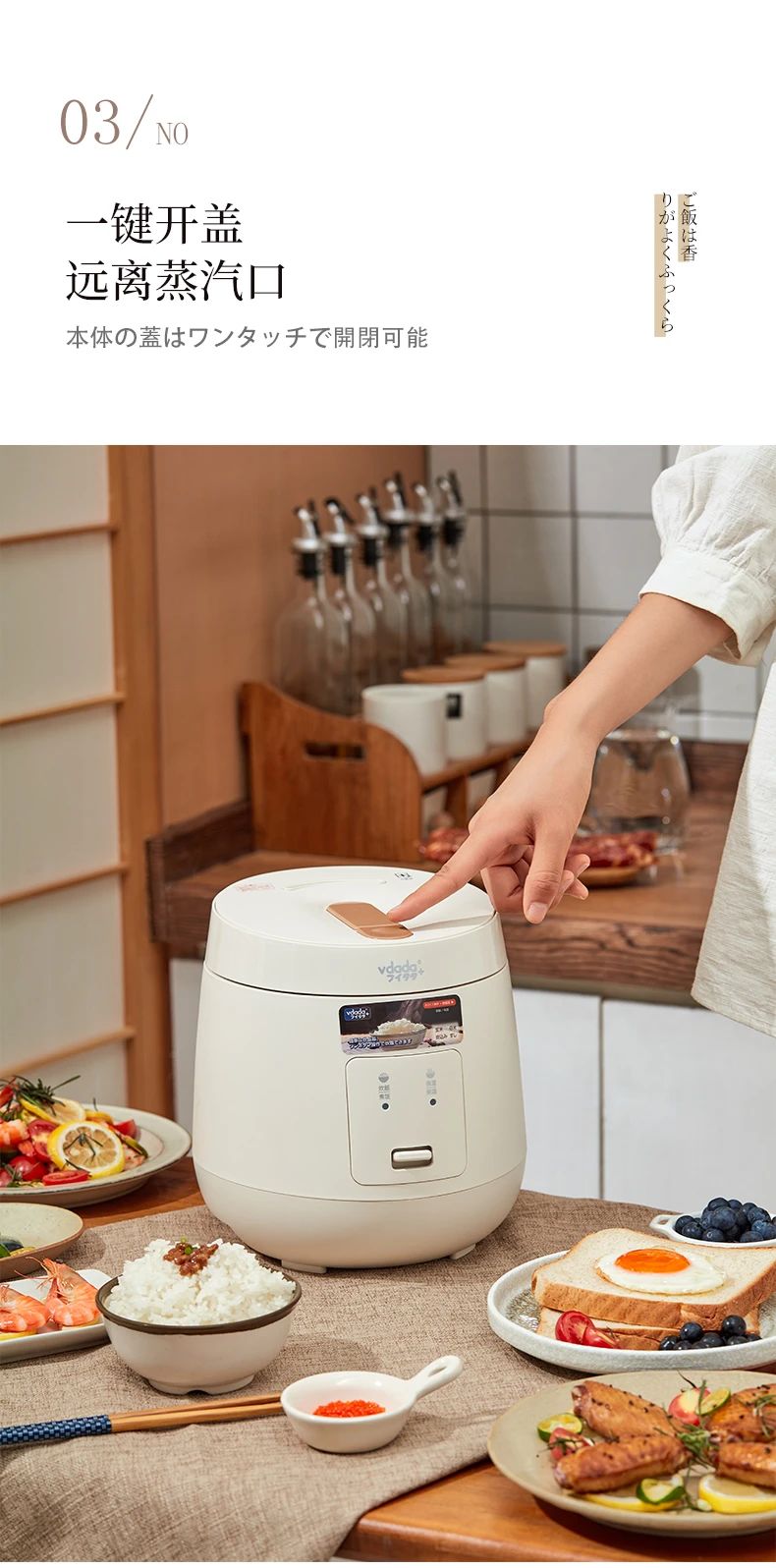 日本vdada味達(dá)自動電飯煲每一天都要好好吃飯~ 2L容量可以滿足約3人份的飯量,內(nèi)膽采用加厚設(shè)計(jì),這種內(nèi)膽擁有非常好的導(dǎo)熱和保溫效果煮出來的米飯粒粒分明口感水潤不粘膩,傻瓜式一鍵操作,免去繁雜步驟,家中老人也可以輕松享用美食,弧形設(shè)計(jì)的蒸汽口比普通電飯煲排氣泄壓更安全