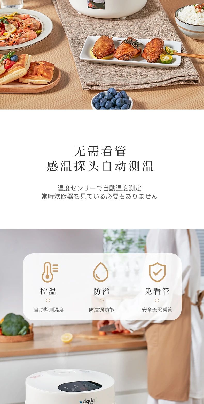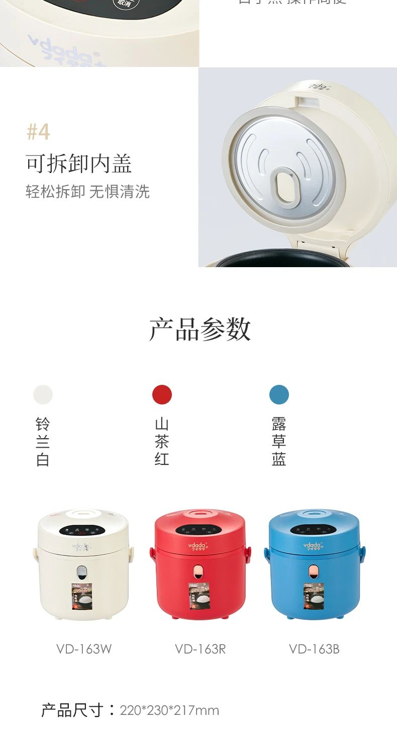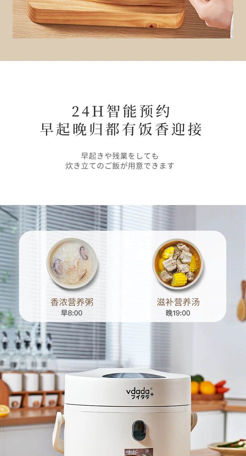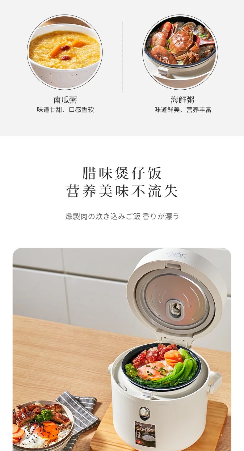 小巧的機身,且重量較輕,1.6L的容量足以滿足兩個人的日常使用需求,滿滿當當可以煮約3杯米量,除了煮白米飯,它還可以用來煲湯、煮粥等,一個電飯煲該有的它都有!尤其值得一提的就是4大快捷菜單(雖小但應有盡有),米飯、粥、湯以及煲仔飯,輕松滿足日常烹飪需求,采用微電腦控制面板一鍵烹煮,家中的老人也可以輕松操作。還有貼心的預約保溫功能!24小時智能預約,12小時長效保溫,讓你早餐有熱粥,下班有暖湯。