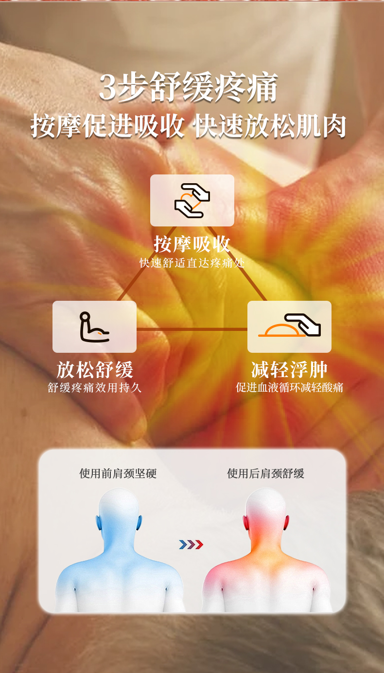 【賣點(diǎn)】哪里不適抹哪里,疏通經(jīng)絡(luò)透皮吸收快速見效、中草藥萃取多重草本濃縮提取、緩解酸麻深層滲透 直達(dá)痛點(diǎn)