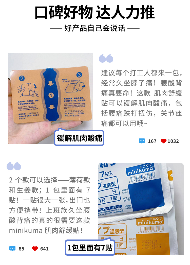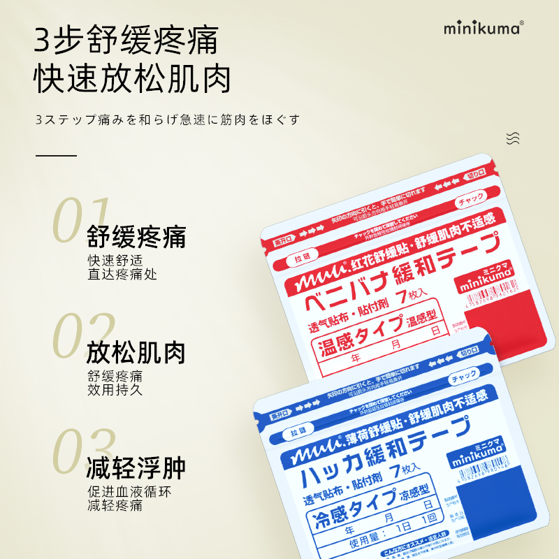 除了功效到位,MINIKUMA舒緩貼根據(jù)不同酸痛問題定制了冷、熱、溫三款,一次性滿足多種需求!