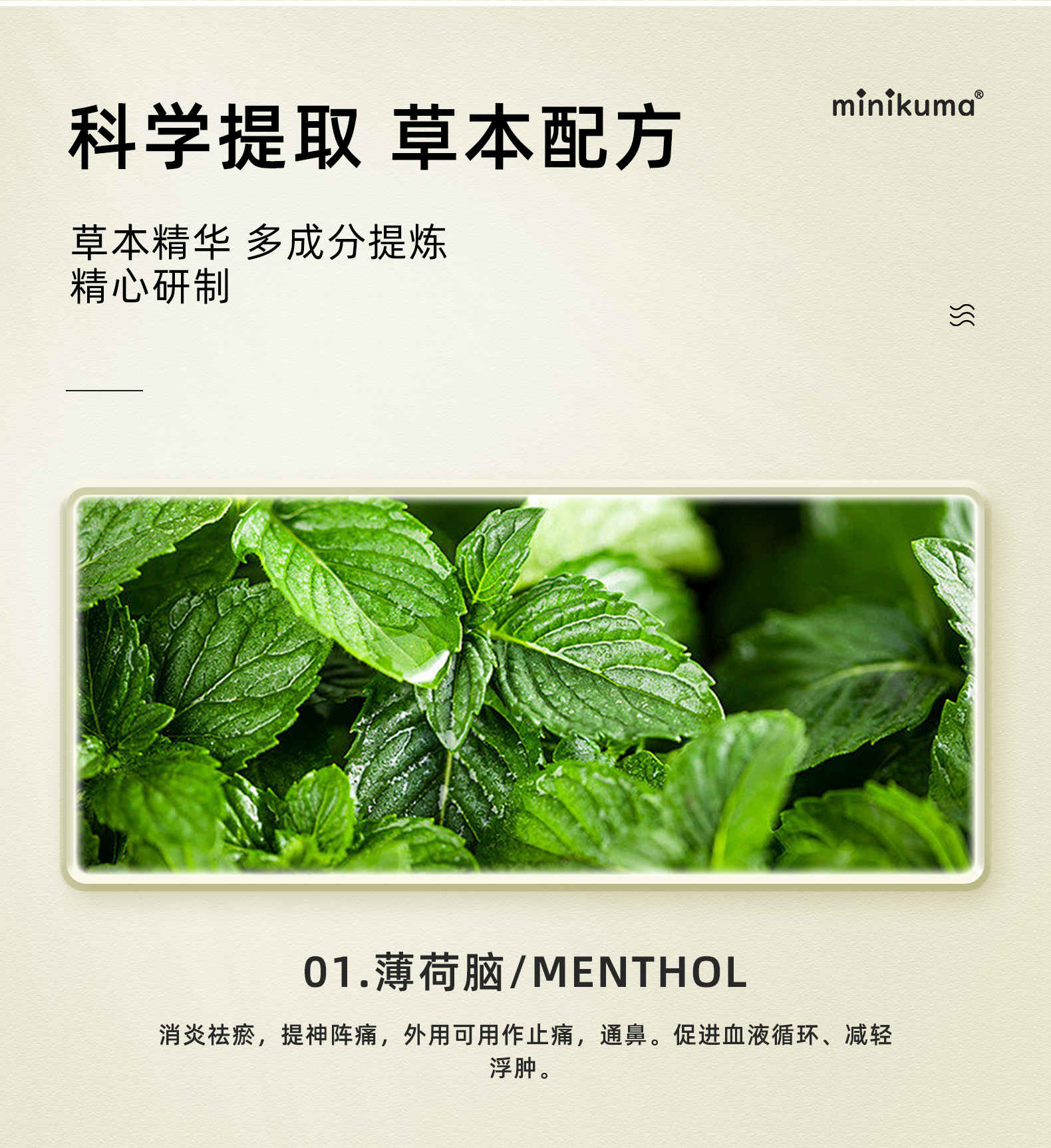 因?yàn)镸INIKUMA主要是中藥萃取,以生姜、薄荷腦、紅花提取物成分為主,用來基礎(chǔ)養(yǎng)生、緩解輕微疼痛絕對沒有問題!