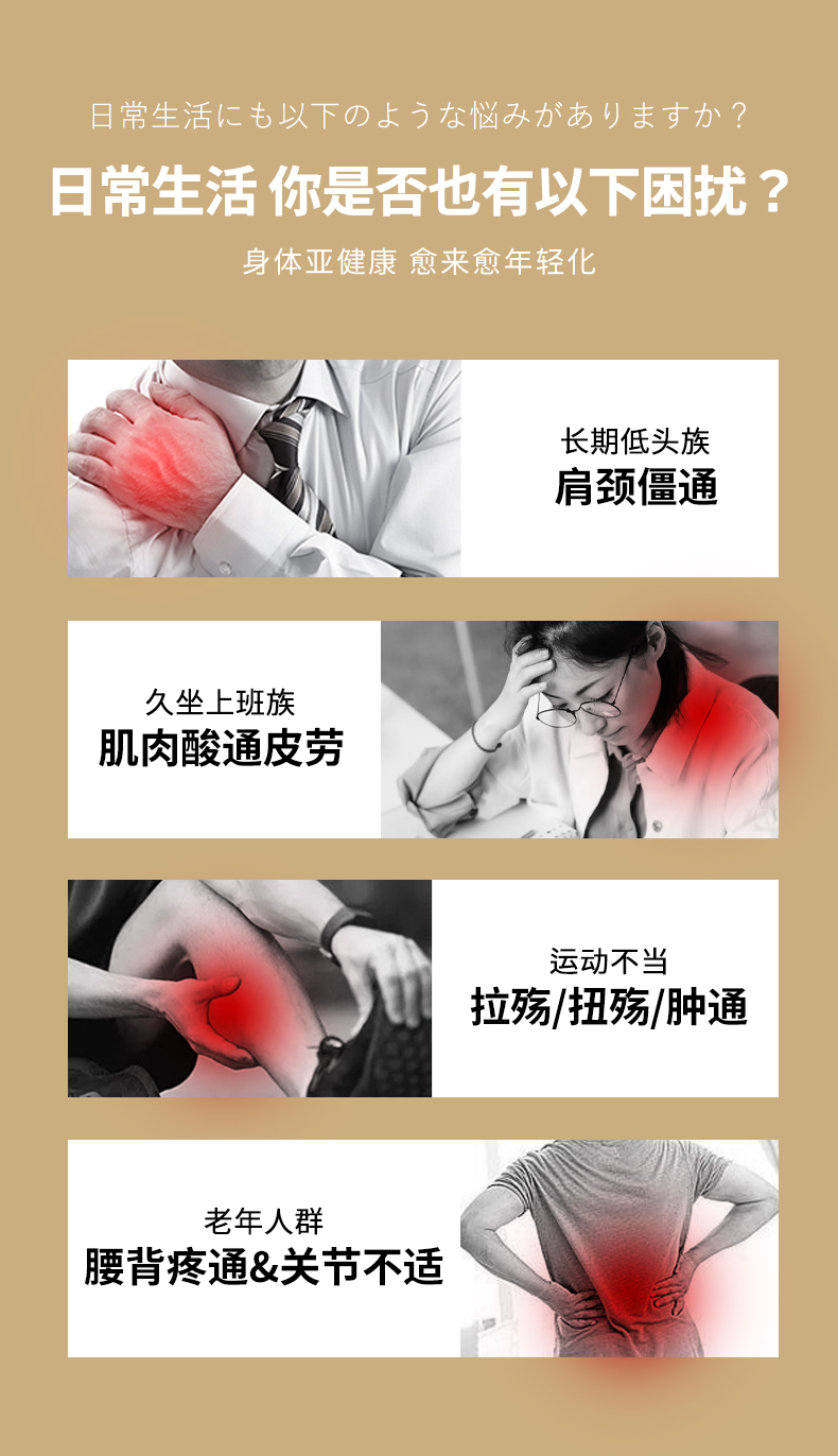 3.根據(jù)不同酸痛問題定制了冷、熱、溫三款,一次性滿足多種需求!