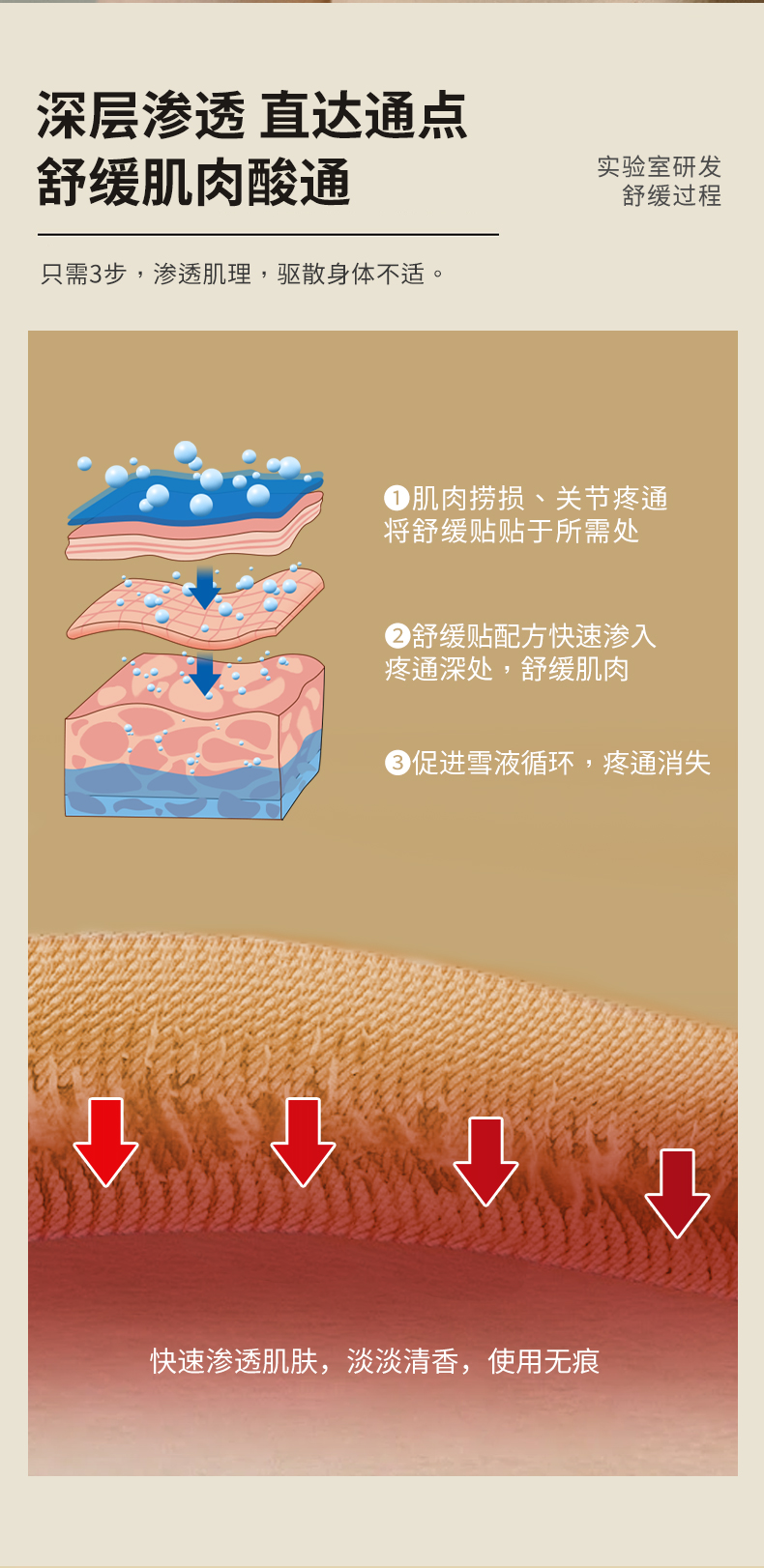②舒緩貼配方快速深入疼痛深處,舒緩肌肉