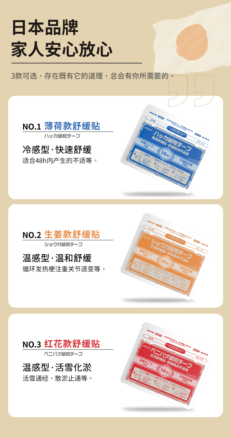 ——針對不同癥狀,分為薄荷、生姜、紅花三款選擇~