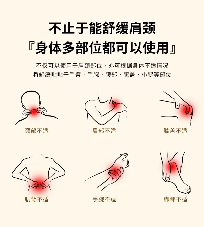 年輕人:工作、游戲、麻將干久了,肩頸手腕硬得跟諾亞方舟一樣,照樣可以貼在痛的部位。