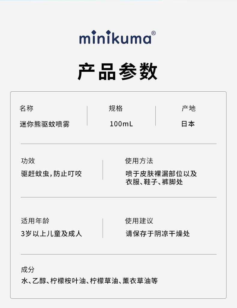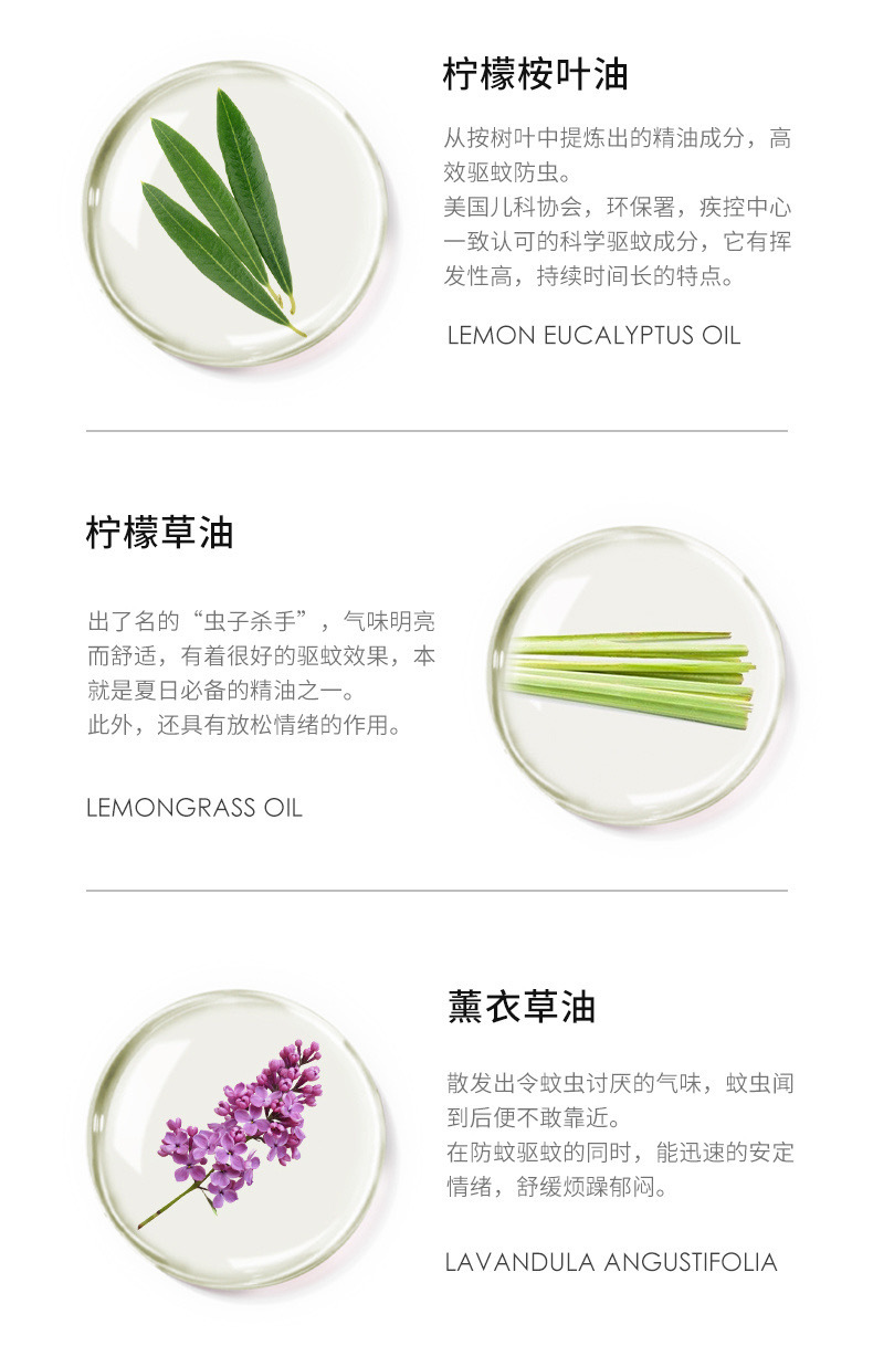 成分:水、乙醇、檸檬桉葉油、檸檬草油、薰衣草油等