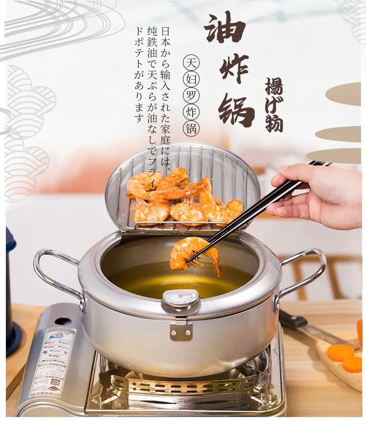 鐵技系列,天婦羅油炸鍋,物理防粘,輕松水洗,遠離油煙,炸好的食物直接放瀝油架過濾,瀝下的油可通過凹槽流回鍋里,舌尖盛宴天婦羅,炸薯條,炸雞翅,炸豆腐,輕松撈起,一鍋美味。 閑暇的周末,睡到自然醒,喜愛油炸實物的你,不要錯過這款小鍋,搭配我家的油壺,堪稱完美,不用出門在家也能Diy型號:鐵技油炸鍋 XC-824N