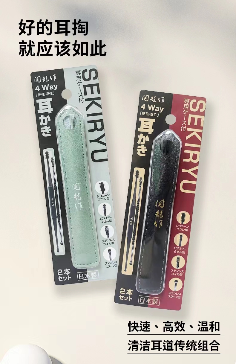 SEKIRYU關(guān)龍作 耳掏2件套【品牌】:SEKIRYU【品名】:SEKIRYU關(guān)龍作 耳掏2件套【產(chǎn)地】:日本【材質(zhì)】不銹鋼、ABS樹脂、PU皮【顏色】薄荷綠、經(jīng)典黑【功效】:清理耳道、舒爽按摩、緩解瘙癢、放松心情【賣點(diǎn)】:1.快速、高效、溫和,清潔耳道傳統(tǒng)組合,掏耳精細(xì)化更舒適。2.可重復(fù)使用、干凈衛(wèi)生,全身水洗不怕殘留。3.經(jīng)典黑和薄荷綠雙項(xiàng)選擇,精致小巧,便捷收納皮袋,方便隨身攜帶隨時(shí)使用