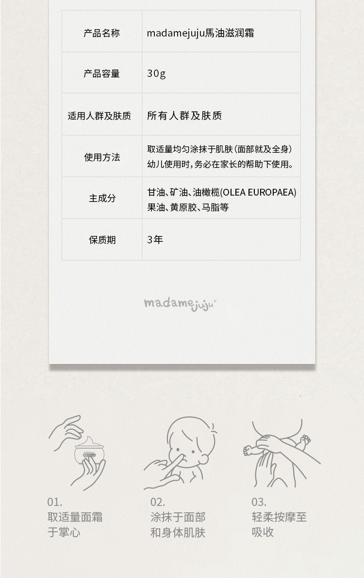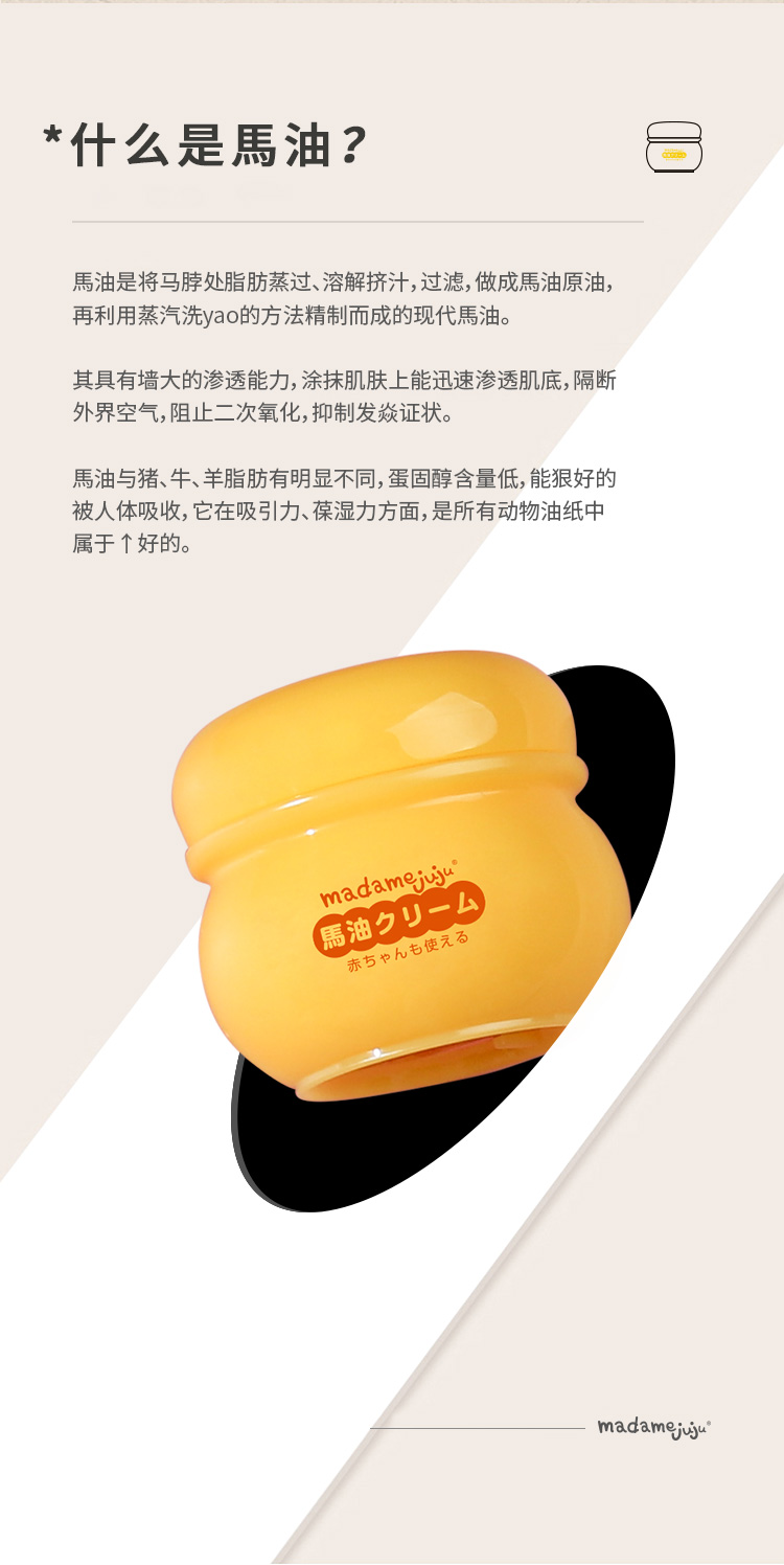 MADAMEJUJU馬油滋潤(rùn)霜 滋潤(rùn)便攜修護(hù)保濕溫和補(bǔ)水